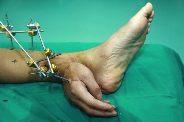 Por ese motivo decidieron implantar la extremidad al tobillo para que la sangre de sus arterias mantuviese viva la mano.